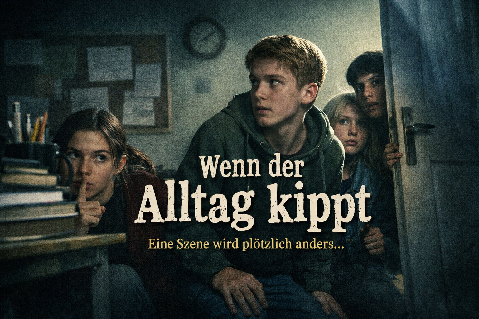 Entwickelt zu diesem Text, den ihr frei verteilen, aber weder in der Reihenfolge noch im Wortlauf verändern dürft, eine Szene an einem Spielort eurer Wahl; es sollte ein Ort sein, der etwas für eure Szene leistet, der sie unterstützt. Entwickelt die Szene so, dass es zu einer Steigerung kommt (Kompositionsmethode)- die Handlung sollte in ihrer Dynamik zunehmen. An einer Stelle solltet ihr das Mittel des Chorischen Sprechens nutzen (in diesem Fall: alle Teilnehmer sprechen synchron den Satz). Zur Vorbereitung habt ihr die Doppelstunde Zeit. Genug Zeit, um den Text frei und wirkungsstark sprechen zu können und um eine überzeugende Inszenierung geschaffen zu haben.